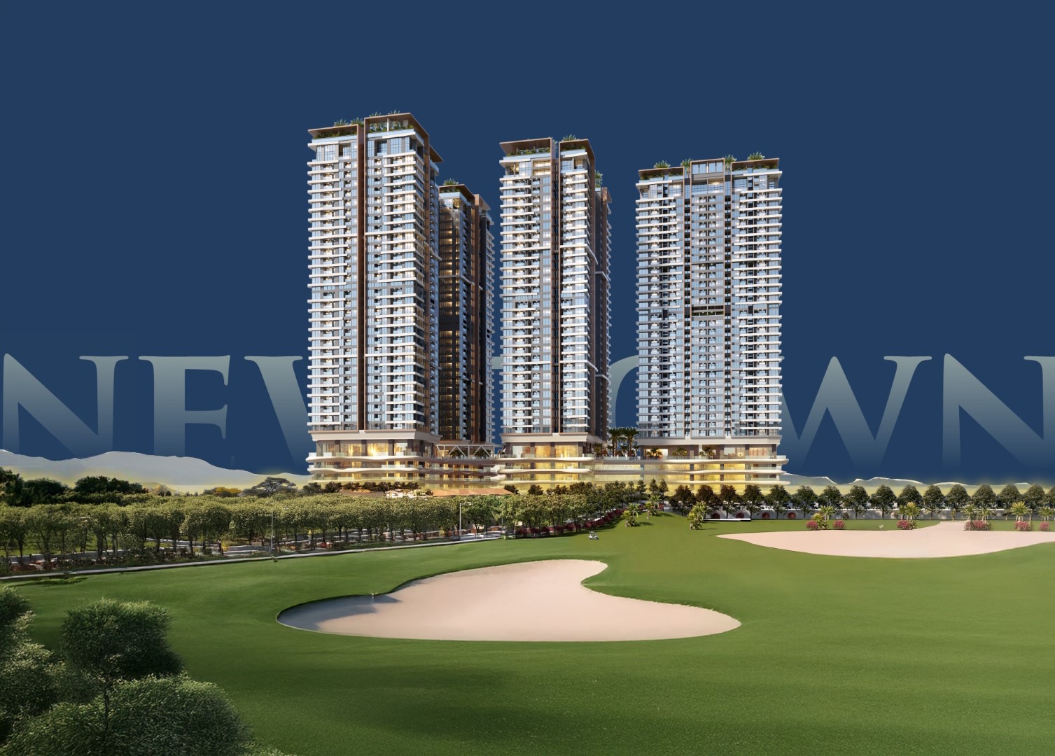 Dự án NewTown Diamond được chia thành ba tòa tháp cao 36 tầng với tổng cộng hơn 1,700 căn hộ từ 1-3 phòng ngủ.